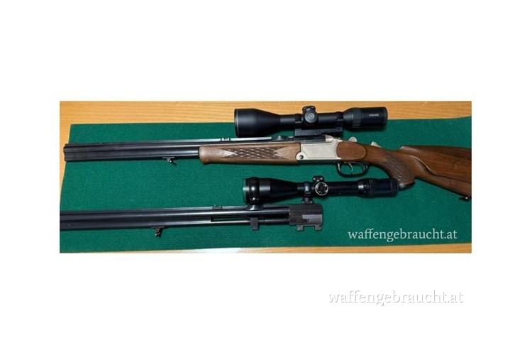 Zum Verkauf steht eine Bockbüchsflinte inkl. Wechsellaufbündel, 2 Zielfernrohre + Zubehör.