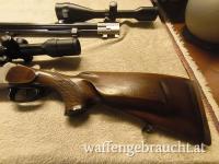 Schöne Bockbüchse mit Wechsellauf, daher für fast alle Begebenheiten gerüstet, mit Spannschieber und Feinabzug. Sehr gute Schussleistung. Lauflänge 60 cm, Schaftlänge 36 cm inkl. Gummikappe,