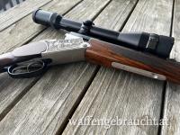 Verkaufe die abgebildete Bockbüchsflinte in sehr gepflegten Zustand! Die Waffe hat eine Handspannung und einstellbare Feinabzüge jeweils für Kugel- oder den Schrotlauf! Auf der Waffe ist mittels Schwenkmontage ein Zielfernrohr der Marke Swarovski Habicht 3-12x50 montiert. Die Waffe besitzt ein sehr schönes und dunkles Schaftholz und eine gravierte Pistolengriffkappe. Die Läufe sind spiegelblank, die Schussleistung ist sehr gut. Zum Lieferumfang gehört die Waffe, das Zielfernrohr und zwei Schachteln Büchsenpatronen im Kaliber 6x62R. Eine Besichtigung sowie Probe schießen ist sehr gerne möglich! Für Rückfragen stehe ich gerne zur Verfügung. Es handelt sich um einen Privatverkauf, keine Gewährleistung, keine Garantie, keine Rücknahme