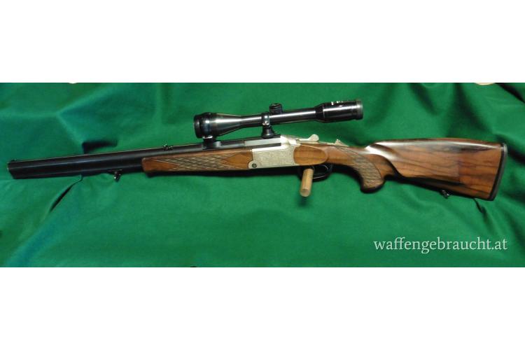 Gut erhaltene Blaser Bockbüchsflinte 700/88 Luxus, in den Kalibern .243 Win.- 20/76, mit Habicht 6x42 Nova zu verkaufen. Dieses Modell hat einstellbare Abzüge, wo man das Abzugsgewicht an den Jäger angepasst wählen kann. Das ist beim Modell 95 aktuell nicht mehr möglich. Mit dem leichtgängigen Spannschieber wird das Schloss der Waffe erst vor dem Schuss gespannt. Dieses Sicherheitsspannschloss entspannt die Waffe auch bei Erschütterung selbsttätig. Die weitreichende Patrone .243 Win. ist für heimische Schalenwildarten, wie Reh- und Gamswild, bestens geeignet. Alle Hersteller haben sie im Angebot mit großer Auswahl an verschiedensten Geschossen.