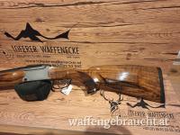 Die Blaser Bockbüchsflinte BBF 95 / BBF 97 ist eine kombinierte Jagdwaffe, die Schrot- und Kugellauf in einem eleganten System vereint. Die Läufe sind vom Büchsenmacher zueinander justierbar, was vor allem beim Einsatz von Flintenlaufgeschossen für hervorragende Präzision sorgt. Die Jagdwaffe besticht durch ihre hochwertige Verarbeitung, mit einem Gehäuse, das genarbte Seitenplatten und einem Schaftholz der Klasse 4 umfasst. Die frei schwingenden Läufe und die Blaser Präzisionsabzüge garantieren exzellente Leistung und eine hohe Treffgenauigkeit.