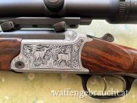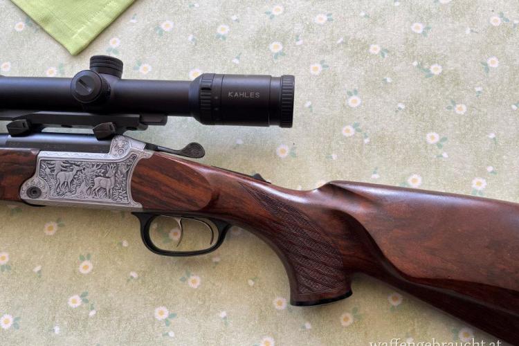 Ich verkaufe meine Blaser BBF95 Luxus mit Blaser Sattelmontage Einschloss-System mit Spannschieber , Gravur links : Rehwild, Gravur rechts: Fuchs mit Enten, Pistolengriffkappe Keiler, Zustand: sehr gut (Schrankwaffe, wurde kaum geführt).