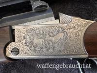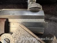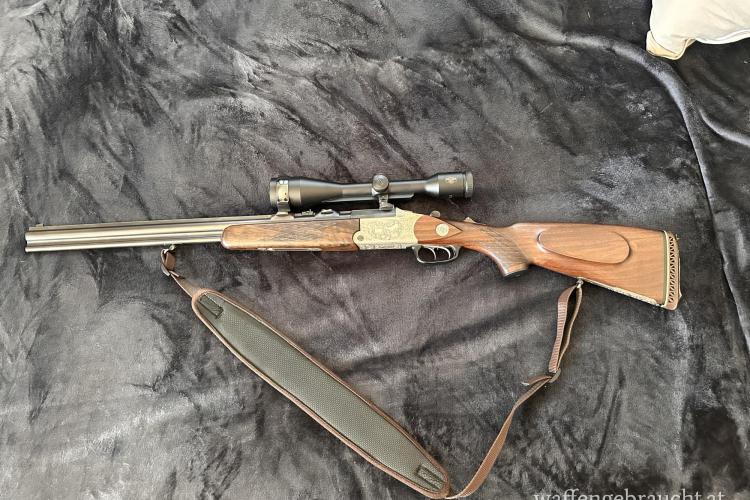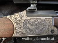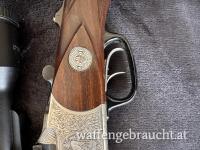 Die Besonderheit des Blaser ist, dass beide Läufe „gestochen“ geschossen werden können. Weiters wurde im Hinterschaft eine Patronentasche eingefräst für 4 Stk. Patronen. Gewehr ist in einem sehr guten Zustand und wurde Sehr gepflegt.