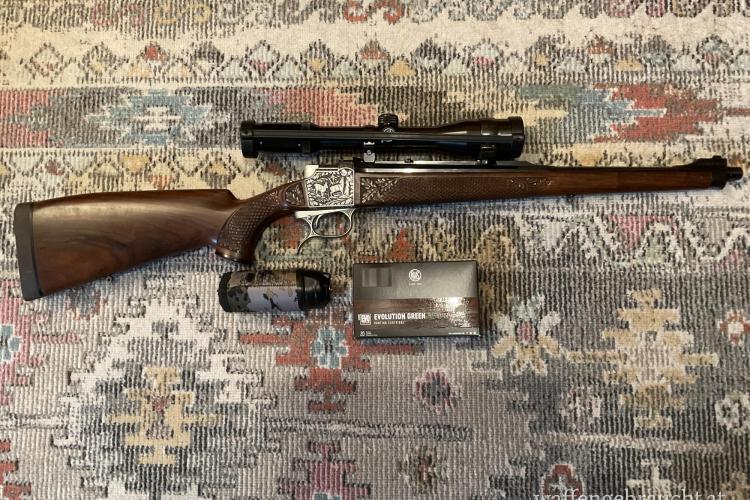 Aus überstand ein neuwertiges Blaser Blockbüchsen Gewehr mit SD, einen neuwertigen neu überholten Kahles Glas, diese Blockbüchse ist sehr selten gebaut als Stutzen, mit dieser tiefen Gravur, ideales Kaliber für alle Wildarten geeignet !