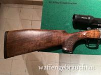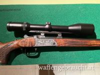 Verkaufe sehr schöne Blaser K95 Kipplaufbüchse im Universalkaliber 30-06! Die Waffe ist in Luxusausführung mit sehr schönen dunklen Schaftholz. Graviert ist die Waffe mit, links Schwarzwild und rechts Rehwild. Der Lauf verfügt über ein Gewinde in M14x1 für die Montage eines Schalldämpfers. Die Gewindeschutzverschraubung ist im Angebot enthalten. Auf der Waffe ist ein Swarovski Habicht 3-12x50 mit Blaser Sattelmontage montiert. Dieses Glas passt perfekt auf diese zierliche Waffe. Weiters ist ein Schaftmagazin für 3 Patronen und ein graviertes Schaftkäppchen montiert. Die Waffe hat nur leichte Gebrauchsspuren und ist sehr führig!
