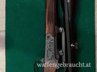 Verkaufe sehr schöne Blaser K95 Kipplaufbüchse im Universalkaliber 30-06! Die Waffe ist in Luxusausführung mit sehr schönen dunklen Schaftholz. Graviert ist die Waffe mit, links Schwarzwild und rechts Rehwild. Der Lauf verfügt über ein Gewinde in M14x1 für die Montage eines Schalldämpfers. Die Gewindeschutzverschraubung ist im Angebot enthalten. Auf der Waffe ist ein Swarovski Habicht 3-12x50 mit Blaser Sattelmontage montiert. Dieses Glas passt perfekt auf diese zierliche Waffe. Weiters ist ein Schaftmagazin für 3 Patronen und ein graviertes Schaftkäppchen montiert. Die Waffe hat nur leichte Gebrauchsspuren und ist sehr führig! Lauflänge ist 56 cm, daher auch mit Schalldämpfer sehr angenehm auf engen Kanzeln.
