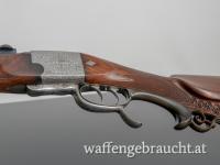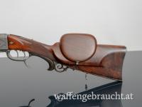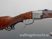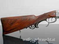 Dieser Blockstutzen, gefertigt von Hugo Reichel in Graz, ist ein wahres Meisterwerk der traditionellen Waffenschmiedekunst. Mit dem Kaliber 7x65R bietet diese Waffe sowohl präzise Leistung als auch eine atemberaubende Arabeskengravur, die dem Schaft und dem Metall eine kunstvolle und edle Optik verleiht.