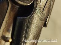Die Waffe hat eine Schaftmagazin und eine für Sammler und Kenner schöne muschlierung der Basküle. Feine Arabesken Gravur mit original erhaltener Pattina und Signalstifte.