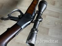 Es handelt sich um ein altes Comblain-Blockbüchsensystem mit einem neuen Ferlacher Lauf.