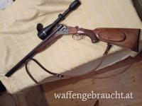 Verkaufe meinen Drilling Franz Sodia Ferlach mit der Optik, Im Schaft ein Magazin , der Drilling ist in einem guten Zustand.