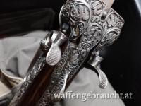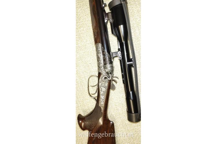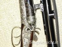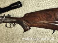 verkaufe edle Hahnbüchsflinte von Furtschegger/Kufstein, Kal. 6,5x57 R/20/76, Lauflänge 63,5 cm, Hinterschaft bis Schaftende 38 cm, tiefe Gravuren mit Tierstücken und Weinlaub, Laufwurzel und Montagefüße ebenfalls graviert, Fischhaut mit dezenter Weinlaubeinfassung - passend zur Gravur, sehr schönes Schaftholz, Bayerische Doppelfalzbacke, Zustand und Schussleistung sehr gut, geringe Gebrauchsspuren.