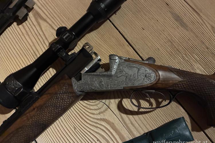 Eine sehr schöne Bockbüchsflinte mit einer idealen Kaliberkombination für alle Wildarten steht hier zum Verkauf.