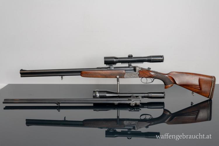 Ferlacher Bockbüchsflinte mit Wechsellauf – Kal. 5,6x50R Mag / 16/70 und 6,5x57R / 16/70 mit Zielfernrohren von Carl Zeiss und B. Nickel