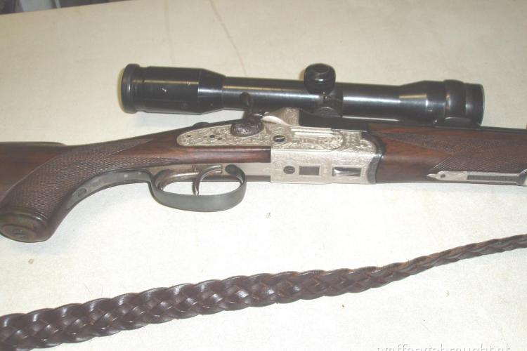 Ferlacher Hahnbockbüchsflinte mit 4fachen Zielfernrohr Habicht. Kaliber 6,5x52R Schrot 28