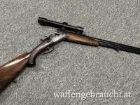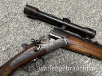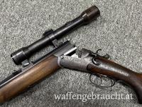 Alte Hahnbockbüchsflinte in gebrauchtem Zustand.