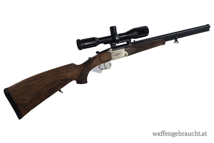 Elegante, gebrauchte Bockbüchsflinte von Sodia mit hochwertigem Swarovski-Zielfernrohr Habicht 6x42 und Leuchtabsehen – ideal für die Pirsch und den präzisen Schuss. Leicht gebraucht und technisch in Top-Zustand.
