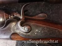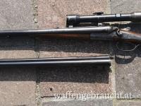 Biete für einen Bekannten eine Hahn Seitenschloss Büchsflinte mit DF Wechsellafbündel. Graviert lt. Fotos, Puppenkopf! Die Waffe wurde von einem Ferlacher BM überprüft, neue Federn und Schlagbolzen wurden verbaut. Die Läufe sind dem Alter entsprechend. 36 Stk. Munition original und wiedergeladen dabei. Der Kugellauf schießt gut (Bild). Bei Interesse Mail über Waffengebraucht oder 06763756270.