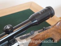 Besonders hervorzuheben sind die Handspannsicherung sowie der französische Stecher, die ein sicheres und präzises Schießen ermöglichen. Die Waffe ist mit RWS KS 5,6 x 50 R Mag. 3,6g. Eingeschossen.