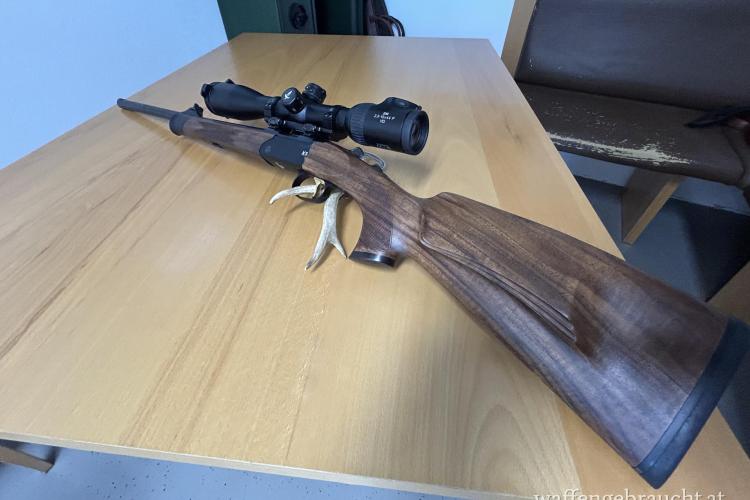 Waffe ist durch die geringe Länge und das Gewicht von 2,3 kg extrem führig. Zudem Präzision, Wirkung und Wildbretzerstörung mit Hornady Precision Hunter exzellent.