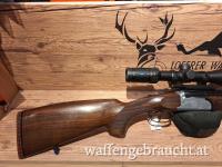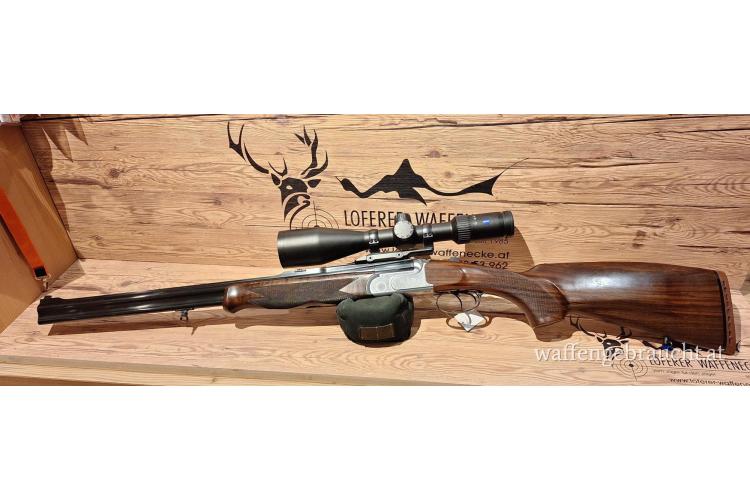 Sie verfügt über einen Rückstecher im vorderen Abzug, sowie die bewährte Technik mit 2-Schloss-Selbstspannersystem und Abzugssicherung. Zu ihren weiteren Features zählen die vorgefertigte Prismenschiene für Kipp-, Schwenk- oder Einhakmontage, der Nussbaumschaft mit Rückschlagminderer, der Stahlschrotbeschuss und der ½-Choke.