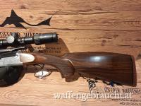 Die Bockbüchsflinte von Sabatti ist eine zuverlässige Jagdwaffe mit aufwändig gearbeiteter Stahlbasküle und durch ihr vorgezogenes Bäckchen geschmackvoll unterbrochen und mit stilvoller Jagdgravur versehen.