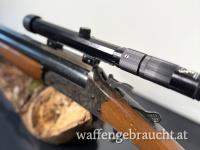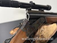 Für präzises Schießen ist ein bewährtes 3–7×18 Jägermeister Zielfernrohr montiert. Für noch stabileren Halt der Optik wurde zusätzlich eine aufgelötete 11 mm Prismenschiene angebracht, die die Montagefestigkeit deutlich verbessert.