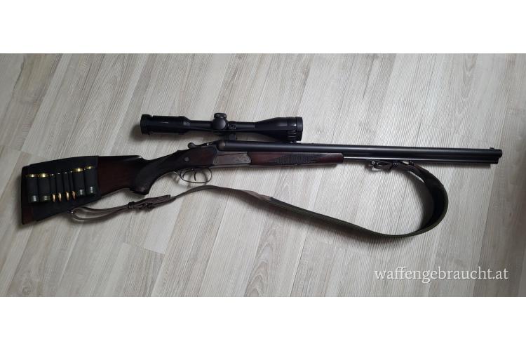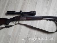 Suhl Drilling Buntgehärtet mit Schwenkmontage und neuem Hawke Zielfernrohr 3-12x44 Kaliber 5,6x50R, 12/70, 12/70