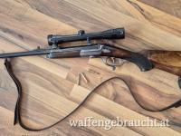 Es handelt sich um einen Ferlacher Hahnkipplauf mit nachträglich eingesetztem Böhler Spezial Lauf, der lauf ist blank! Die Waffe wir mittels Ruckverschluss Gebrochen! Dieser Ferlacher Kipplauf stammt aus den ca.1920-30ger Jahren und ist noch Original Alte Waffen Kunst mit SEM, ein sehr schönes Stück das man in diesem sehr selten Kaliber kaum bekommt! Das ZF ist sauber und hat das absehen 1 Da es sich bei dieser alten Jagdwaffe schon um eine Sammlerwaffe handelt hat sie auch keinen jetzigen aktuellen Neubeschuss sondern nur den Damaligen!!! Die Schussleistung dieser Hornet ist hervorragend!