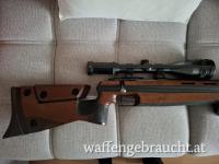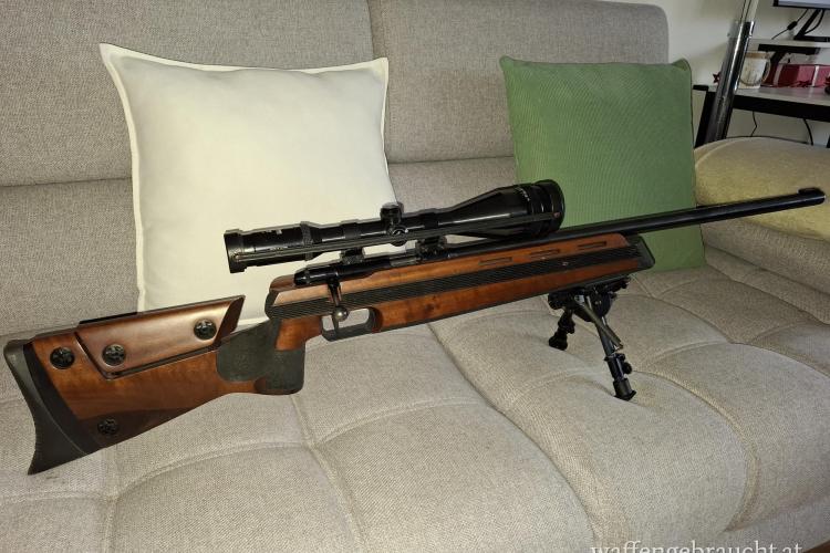 Gewehr ist auf 100m eingeschossen, in gutem Zustand und einem sehr guten Zielfernrohr mit sehr feinem Fadenkreuz.