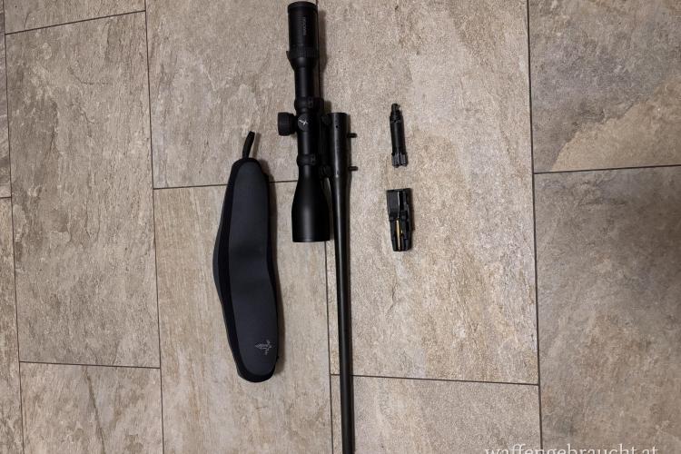 Zum Verkauf steht ein Blaser R8 Wechsellauf im Kaliber .22 Hornet mit Mündungsgewinde M15x1, inklusive Swarovski Z4i 3–12x50 mit Leuchtpunkt, montiert auf einer originalen Blaser Sattelmontage.
