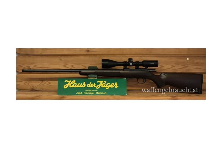 Kleinkalibergewehr von CZ mit einem Zielfernrohr mit Leuchtpunkt und einem Mündungsgewinde 1/2"-20.