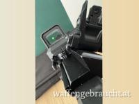 Montiert ist ein Sightmark Ultra Shot R-Spec Reflexvisier umschaltbar auf Rot und Grün, die original Flip-Up Visiere sind auf einer 45° Schiene. Ebenso ist ein Handgriff montiert.