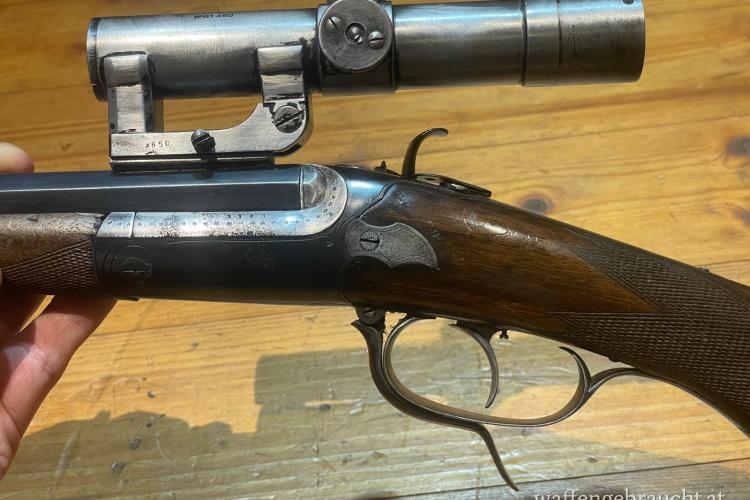 Ein sehr aufwändig gefertigtes schönes Kindergewehr mit Kipplaufsystem und Rückstecher, Baujahr 1912. Nach dem Weltkrieg wurde offensichtlich ein russisches Scharfschützenzielfernrohr nachgerüstet. Das Gewehr ist mit dem Kind mitgewachsen, denn der Schaft wurde einmal verlängert. Der Laufzustand ist noch sehr gut und die Optik ist klar. Geschossen habe ich nie damit, es war nur in meiner Sammlung, aber theoretisch müsste es funktionieren. Ein Probeschießen ist auf Wunsch möglich.