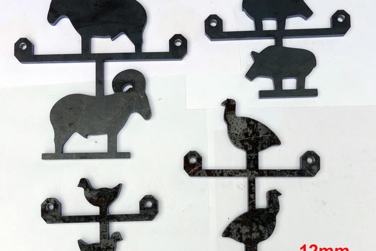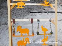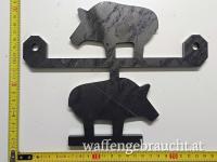 Die Figuren entsprechen IMSSU und NRA Normen 1/5 Scale, Materialstärke Huhn und Truthahn 12mm, Schwein und Widder 10mm. damit die Figuren nicht zu sehr pendeln, wurde jeweils ein Tier als Gegengewicht unten angehängt. Loch für die Aufhängung ist 10mm.