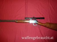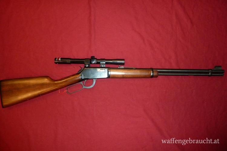 Unterhebelrepetierbüchse, Winchester, Mod.: 9422, Kal.: .22 l.r., Nr.: F82396, Lauflänge: 515mm, die Stahlteile brüniert, Röhrenmagazin unter dem Lauf, höhenverstellbares Visier, Klemm- Montage mit montiertem ZF „Tasco“ 4x20, Abs.: 30/30, das Hauptrohr aus schwarzem leichtmetall mit Höhen- und Seitenverstellung, der Schaft aus Nußholz mit originaler Schaftkappe aus schwarzem Kunststoff, gebraucht, sehr guter Erhaltungszustand, der Lauf innen blank, die Stahlteile sehr gut erhalten, der Schaft mit Gebrauchsspuren, deutscher Beschuß aus dem Jahr 1973