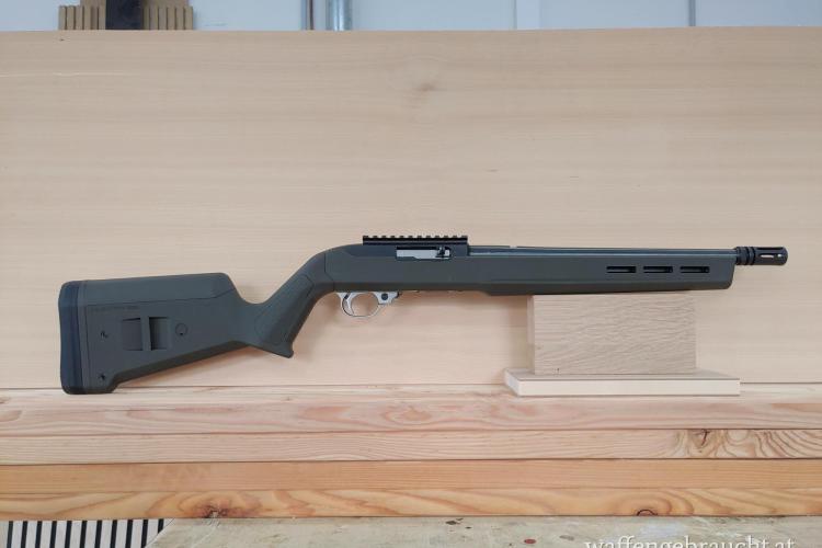 Verkauft wird hier eine Ruger 10/22 tactical mit 13"Lauf, 1/2x28 Mündungsgewinde, Mündungsbremse, Magpulschaft in OD green und Picatinnyschiene.