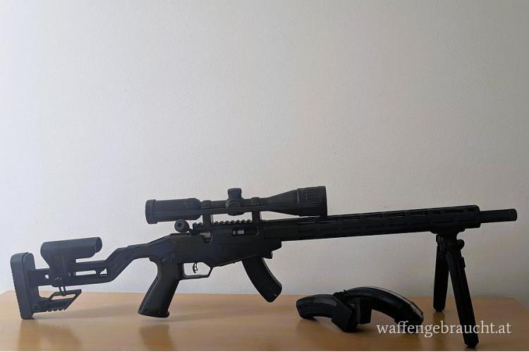 | Zubehör | 2 Magazine für 15 Schuss, 1 Magazin für 25 Schuss, Zweibein |