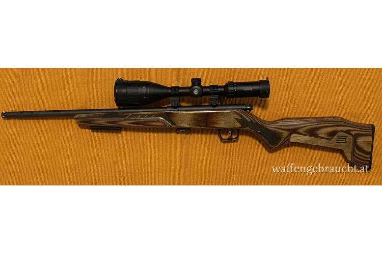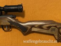 Lauflänge 18 Zoll, sehr präzise, auch mit günstiger Munition. Laminat-Schaft, Mündungsgewinde ½-28, einstellbarer AccuTrigger, 5-Schuss-Magazin, Schiebesicherung, Montageaufnahme 2-Piece Weaver Bases,