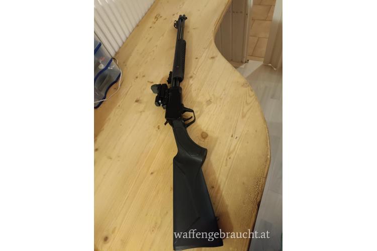Zusätzlich wurde eine Picatinny Schiene und Rotpunkt Visierung montiert
