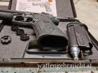 Die CO2 Waffe ist in einen sehr guten Zustand wenig gebraucht. ,im Griff kommen 2 Stück CO2 Kapseln 12g , geladen wird sie mit 2 Stück 8er Trommeln hintereinander, d.h mann hat 16 Schuss...incl. Koffer und Bedienungsanleitung...CO2 Kapseln nicht dabei.