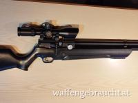 Verkaufe hier das wohl leiseste Pressluftgewehr in Kaliber 4,5mm mit bis zu 30 Joule einstellbar!Das Gewehr besitzt einen Regler den man leicht von außen mit einem Schraubenzieher auf die gewünschte Geschwindigkeit einstellen kann. Es besitzt zwei Manometer wobei eines für den Reglerdruck und das andere für den Füllstand zuständig ist. Der Regler bewirkt eine konsistente Geschwindigkeit und schießt unglaublich genau . Es läßt sich bis 300 bar befüllen für viele Schüsse! Das Zielfernrohr ist in Absehen in 36 Farben einstellbar.An der Mündung befindet sich ein 1/2 Zoll UNF Gewinde mit einer Schutzschraube abgedeck