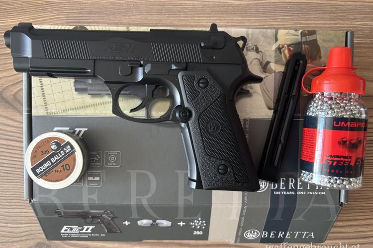 Zu verkaufen von meiner co sammlung ein Beretta 92F-elite II.Pistole ist ungeschossen,war nur in vitrine,mit andere modell.Magasinn fasst 19 bbs,mundung energie 3 j,lauflange:142mm,glatt abzug doue-action.weawerschine fur zubehor ist ja,so wie schutz brille und 250 stk bbs.weitere bbs von umarex kann mitgekauft 1500 stk,um 6 eur.Pistole ovp.