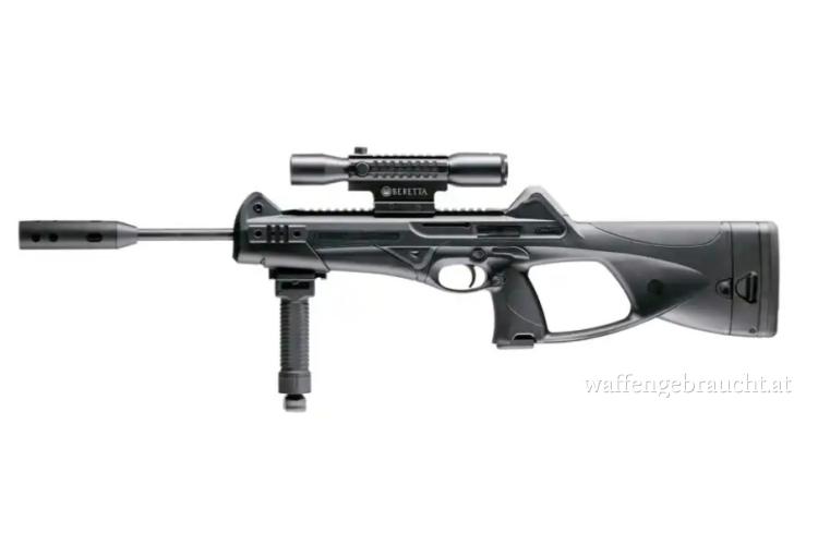 Das Modell Cx4 Storm verfügt über eine lange Picatinny-Schiene zur Montage von Zielfernrohren, Leuchtpunktzielgeräten oder Lasern. Als XT-Ausführung mit Kompensator, TriTac-Zielfernrohr 4x32 und QSB-Zweibein.