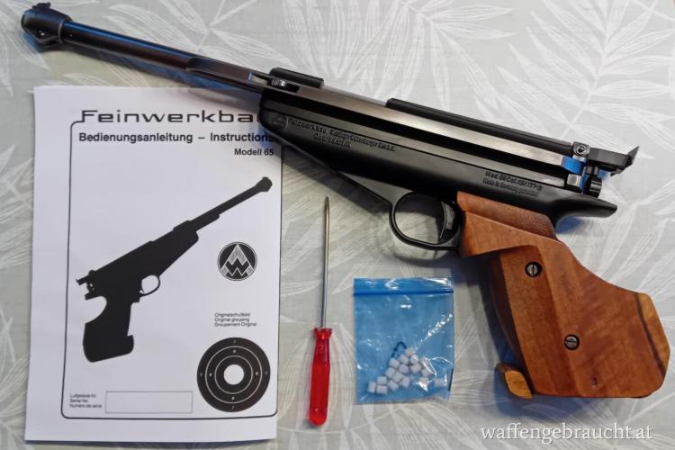 Luftpistole Feinwerkbau Modell 65 Kal. 4,5 mm, Rechtsgriff verstellbar, die Pistole ist vor ca. 3 Monaten komplett überholt worden und ist auch optisch " KLASSE " Zustand. Bedienungsanleitung (Kopie). 1 Koffer gibt es kostenlos dazu ! Der Verkauf erfolgt nur gegen Altersnachweis und Vorkasse oder Abholung bei Barzahlung. Keine Garantie. Versand versichert in Deutschland 15,- Euro ins EU - Ausland 25,- Euro