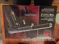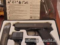 Dieses Airsoft-Modell der berühmten Heckler & Koch-Pistole besitzt einen Metallschlitten und eine Picatinny-Adapter-Schiene. Etwa 1000 Schuss pro Akkuladung im Full-Auto Modus sind möglich, aufgeladen wird der Akku direkt an der Waffe. Inkl. Akku, Ladegerät und Schalldämpfer-Attrappe.