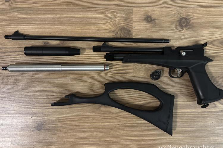 Es hat ein repetier sistem,geht mit magasinn,oder einzelschuss.Lange lauf und schulterstutze vorhanden,wie mindengsgewinde mit schutzlappe und origonal sd /fir berechtihe/.sehr sparsam und macht menge spass.Statt co2 konnte mann ein pressluft gehause einbauen,so erreicht bis ca 14 joule,ist ja auch dabei.