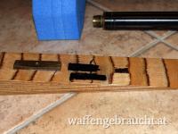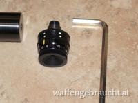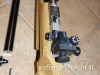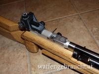 Der schöne Holzschaft hat nur wenige Gebrauchsspuren. Auch der Laufmantel ist im perfekten Zustand. Kein Flugrost oder dergleichen. Weiters ist eine verstellbare Irisblende (mit Filter) am LG montiert.