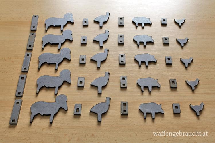 Angeboten werden 20 Stück Metallsilhouetten inkl. Fußteile für Luftpistolen,- und Luftgewehrbewerbe