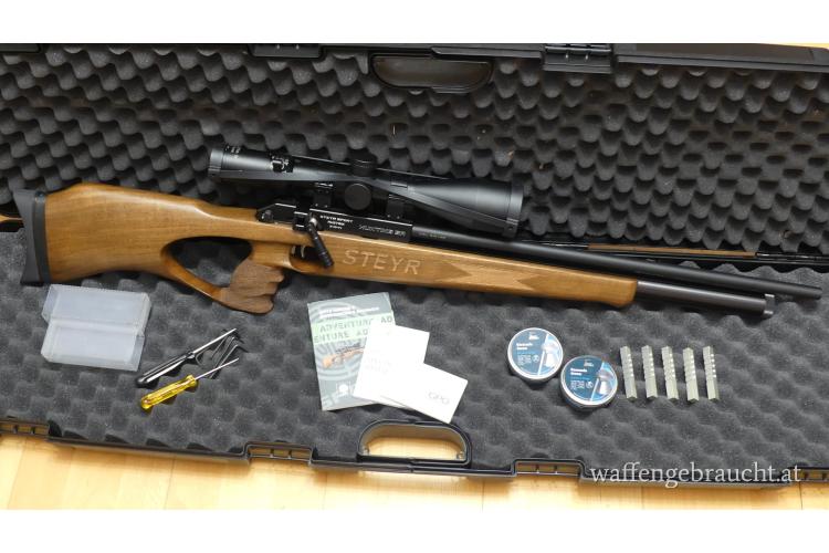 STEYR HUNTING 5 AUTOMATIC BLACK 5,5 MM 40 J, mit ZFR GPO Spectra, 5 Magazine, 2 Dosen Diabolos, Zielscheibe, Luftpumpe
