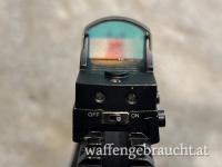 Es hat ein "Red dot" aufgesetzt, das nach belieben entfernt oder durch andere Zielfernrohr-Systeme ausgetauscht werden. Der Kolben kann leicht ein- und ausgefahren werden.